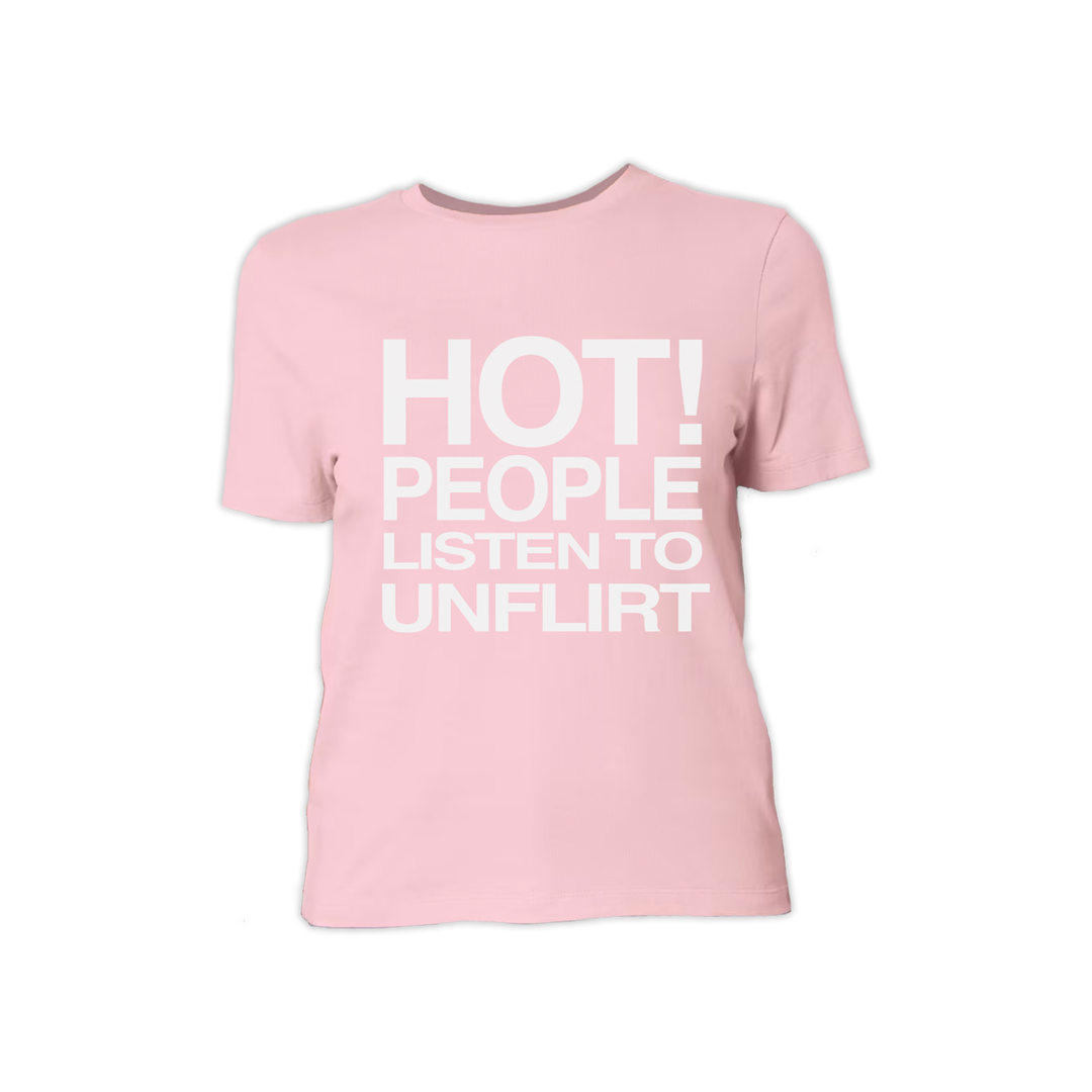 'hot people listen to unflirt' fitted tee